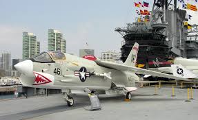 One of the many aircraft's on the Flight Deck at the Intrepid is Vought F-8K Crusader. This aircraft was the first supersonic fighter designed for carrier use. On March 25, 1955, it became the first single-seat aircraft to break the sound barrier on its maiden flight. It was the fastest aircraft with speeds of 1,322 mph that can go 52,350 feet. The Vought F-8K Crusader was used extensively in the Vietnam War. It has been on the ship for a long time, around 37 years from when it retired.